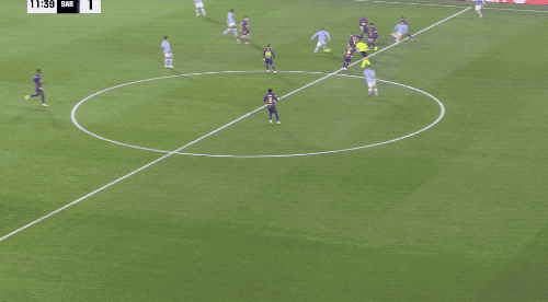 第11分鐘,巴薩的造越位戰術再次失敗,巴爾德拖在了后面,塞爾塔快速進攻,塞爾吉奧·卡雷單刀破門,塞爾塔瞬間扳平。